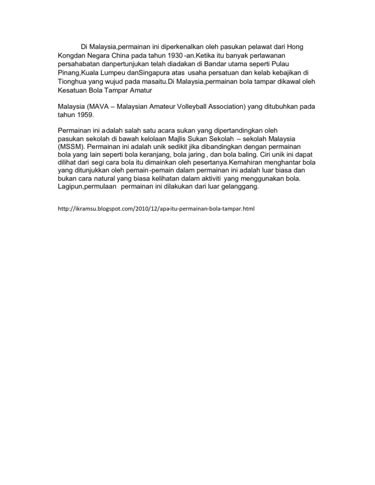 Sejarah Perkembangan Bola Tampar Di Malaysia Pdf